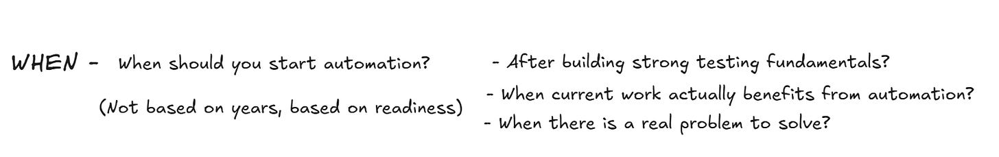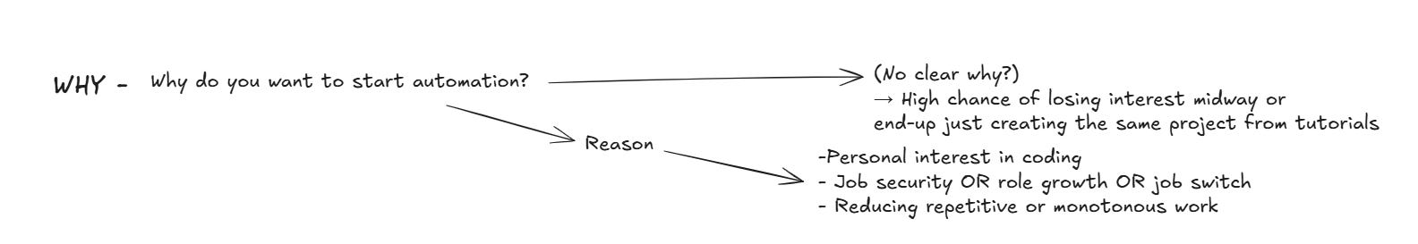 This is the most important question, and the one that is skipped most often. People start automation because they feel they should. Sometimes it is about job security. Sometimes it is about curiosity around coding. Sometimes it is simply about escaping repetitive and monotonous testing work. Or sometimes it can be a job switch, also.