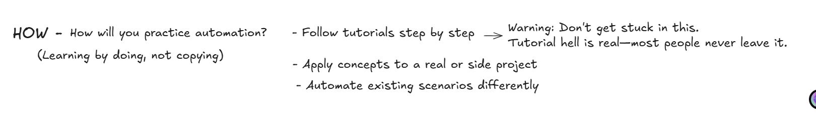 Automation is not just about writing scripts that pass today. It is about solving problems in a way that still makes sense tomorrow. When learning starts with the right questions, automation becomes intentional and sustainable. When it starts with tools alone, it often becomes performative and short-lived.